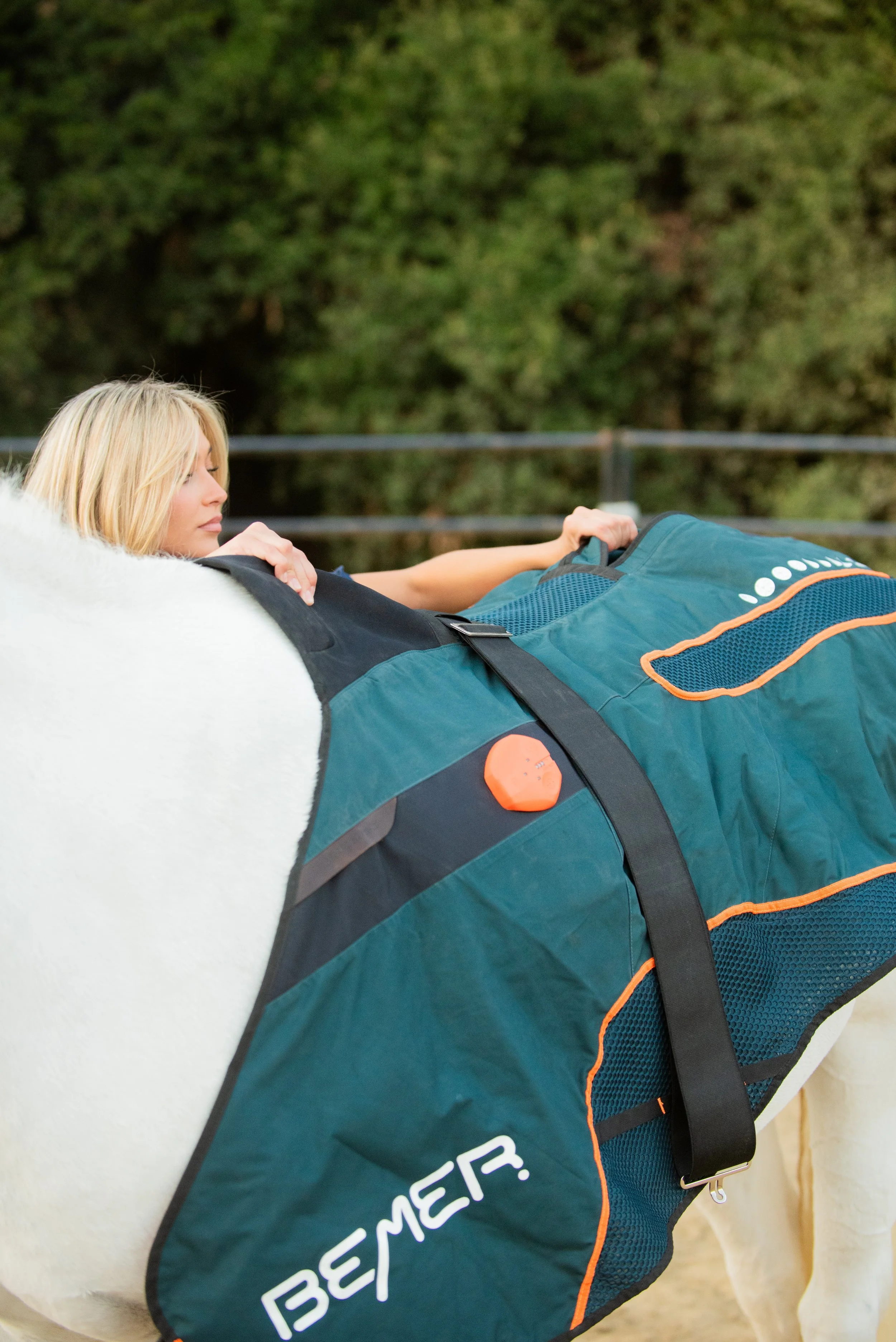 BEMER technology works by using pulsed electro-magnetic fields signaled through the coils aranged in the blanket and leg cuffs. These signals work with the magnetic field in your horses body to encourage microcirculation throughout. This has many benefits, some including; increased physical performance, enhanced suppleness, advanced healing/speedy recovery post-injury, relaxation, regeneration, reduced inflammation, increased blood flow, and much more.